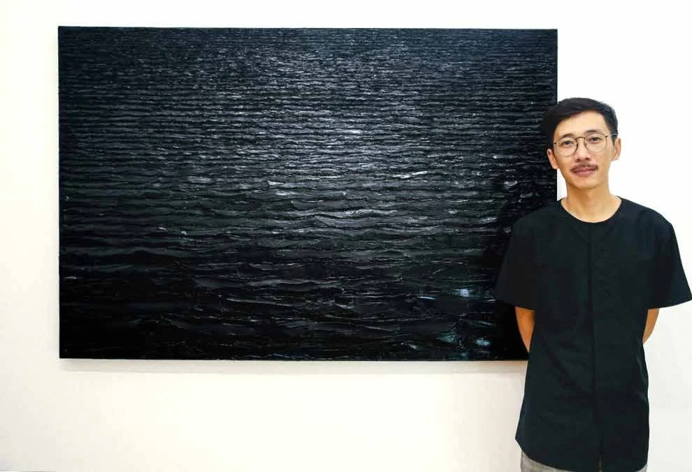 Artist Bao Vuong paints as we see at night, using only black paint with its variations of shine and matness. He paints between abstraction and figuration, between painting and sculpture, between sky and sea.