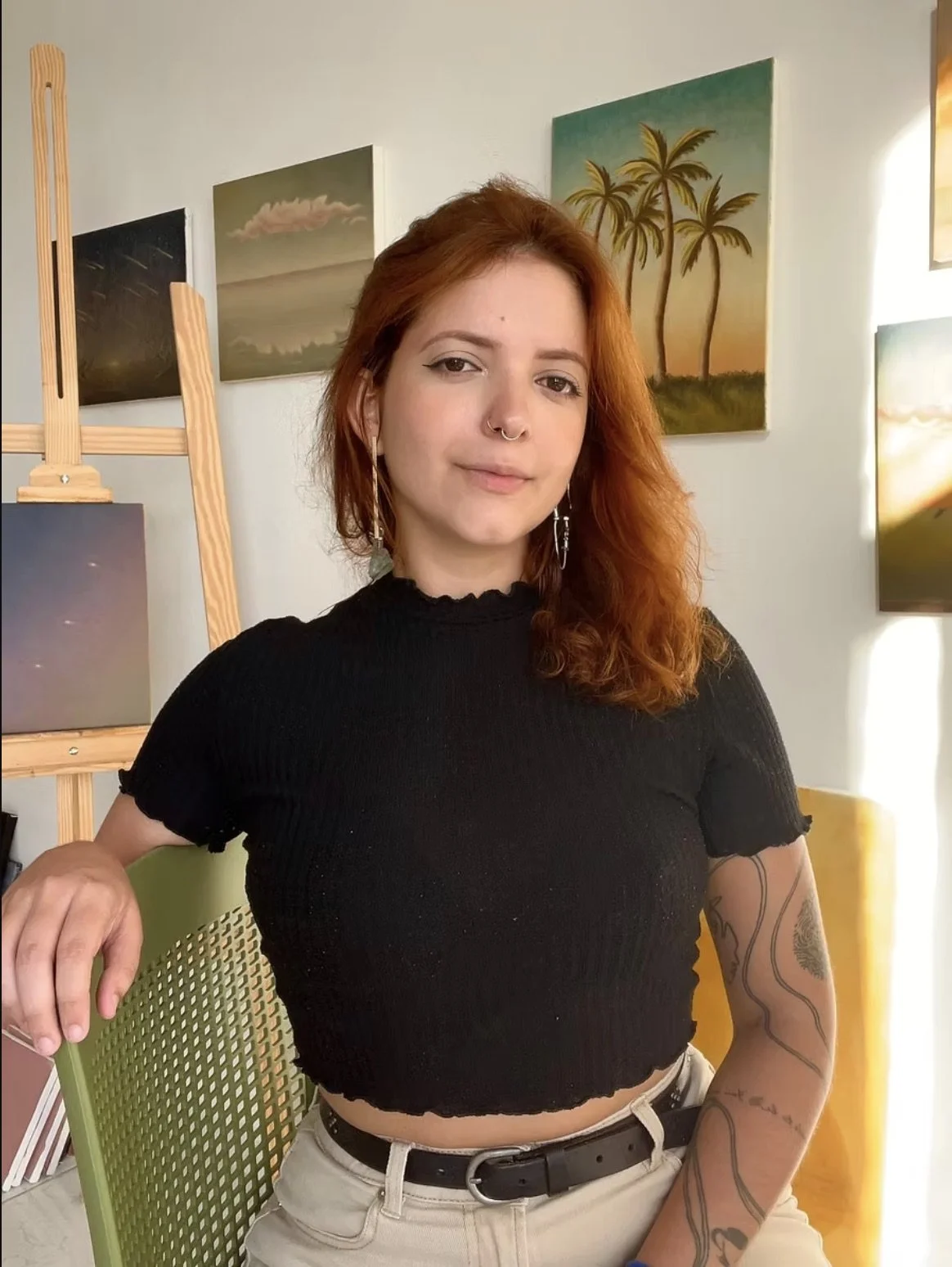 The painter and visual artist from Fortaleza-CE began her journey with oil painting when she began her studies at the studio of the artist Paula Siebra in 2022. Since then, she has dedicated herself to exploring and developing the technique. Landscapes appear in the artist's paintings as moments of tranquillity and contemplation, where nature is the protagonist. The artist's aim is to portray the beauty of the environment, and the attitude of turning to the present, considering sensitivity and the act of stopping and observing, a political act. The paintings of the "Still Life" theme invite us to recall an affective memory that relates objects that mark moments of everyday life. The motivation comes from a keen observation of the simplicity present in what at first glance does not seem particularly remarkable.