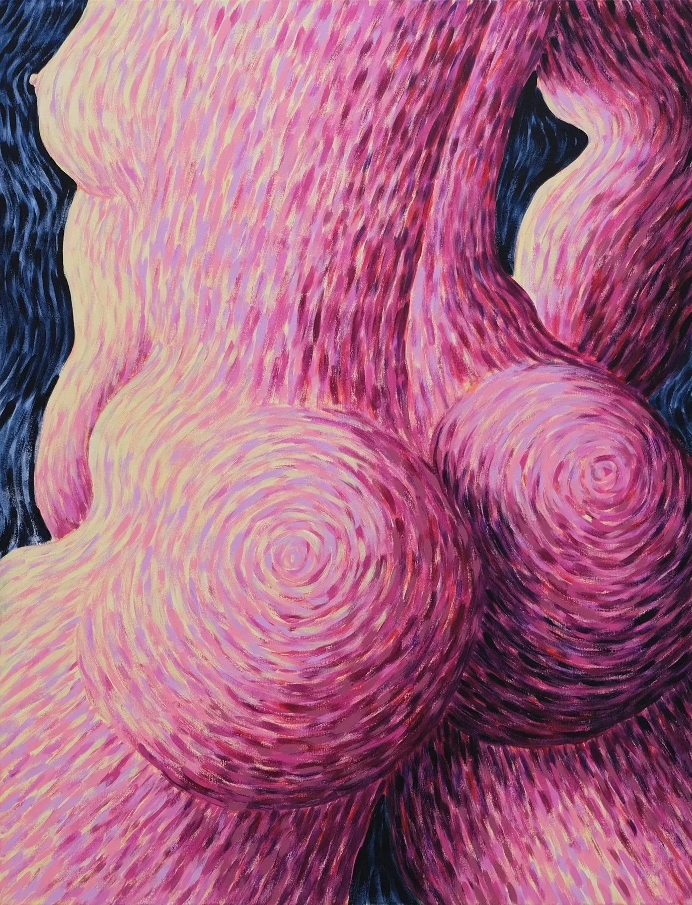 The Ukrainian artist Iryna Maksymova (°1991, Ukraine) presents a narrative rich in playful elements and wit. To her, (female) tenderness is a weapon of inner strength, even as adversity accumulates in the surrounding world. In her visual language, body, animal, myth, and landscape are intricately interwoven.